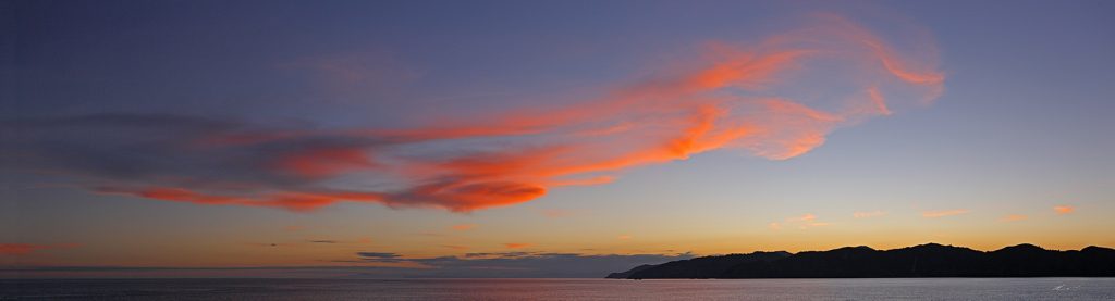 Our local waters on a benign late summer evening, in contrast to Cook Strait in full winter fury image. A quiet calming image in sympathy to the warm colours of the space, taken only 25km away as the crow flies from the restaurant.